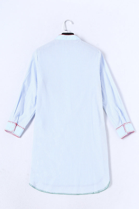 Color Block And Lace Patch Slim Stripe Irregular Shirt Dress