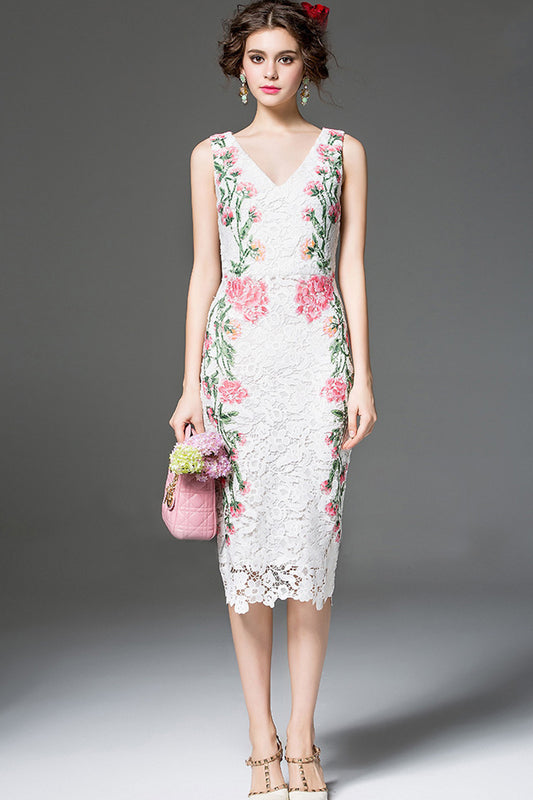 Elegant Embroideried Lace Hollow Out Cocktail Dress