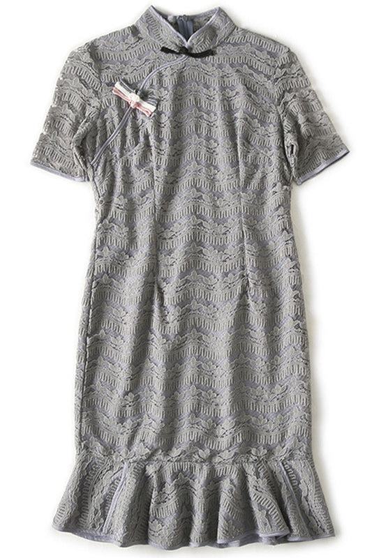 Elegant Lace Stand Collar Falbala Peplum Mini Dress