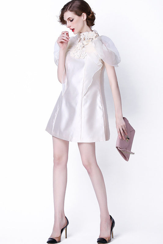 Falbala Trimming Embroidery Cap Sleeve Loose Dress