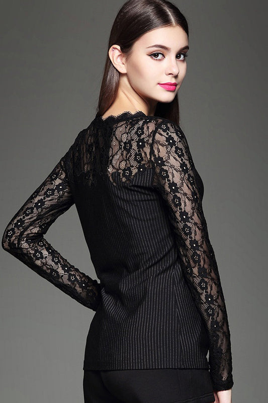 Fashion Lace Round Neck Hollow-Out Falbala Shirt