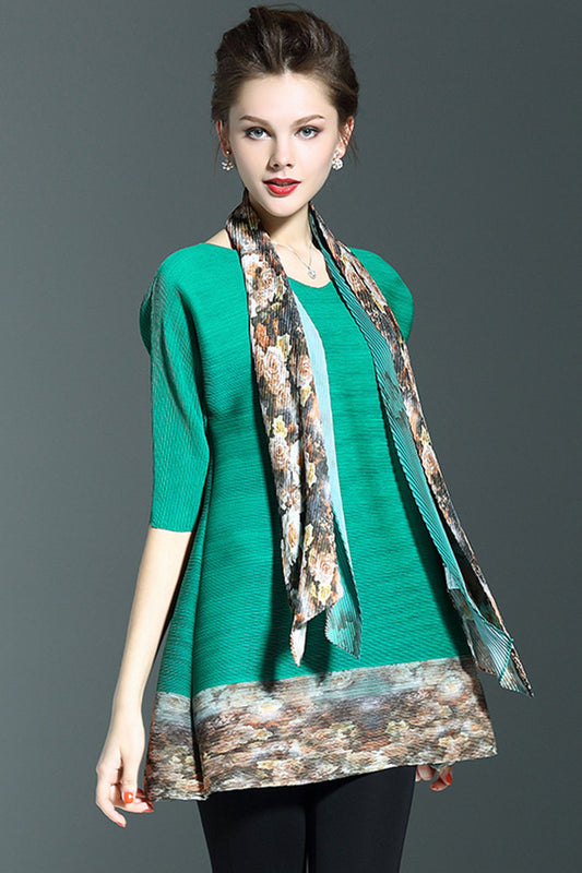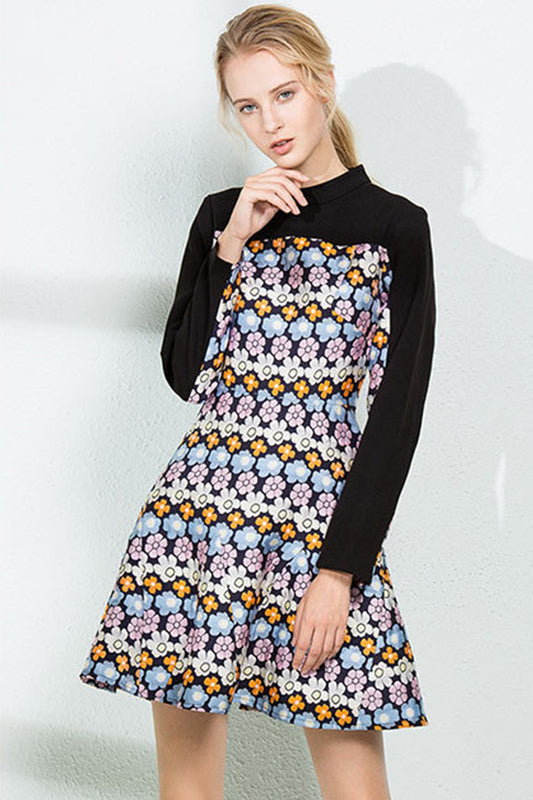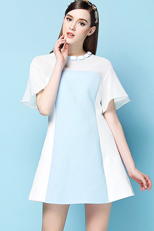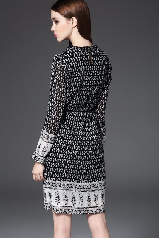 Flare Neck Pattern Print Hollow Out Back Lacing Waist Mini Dress