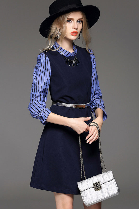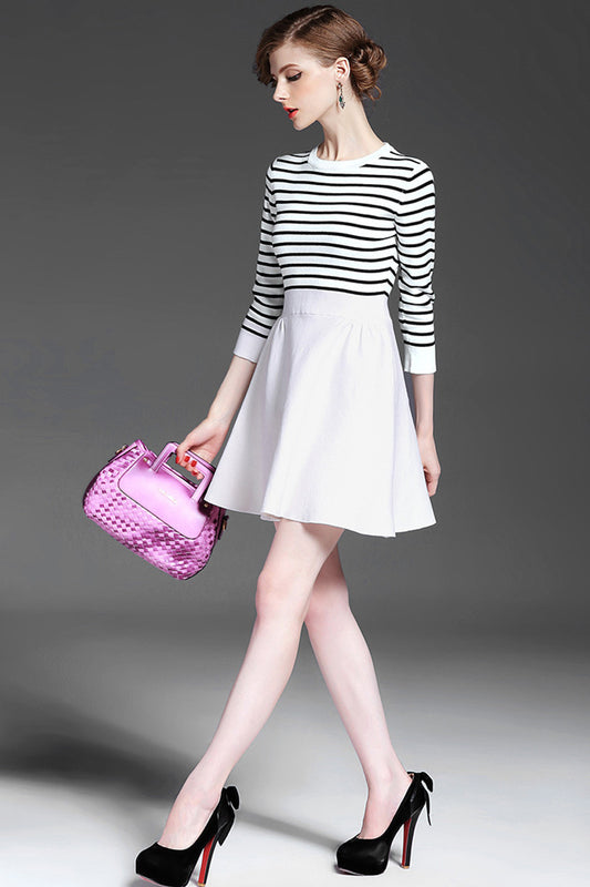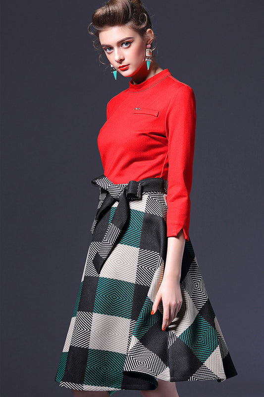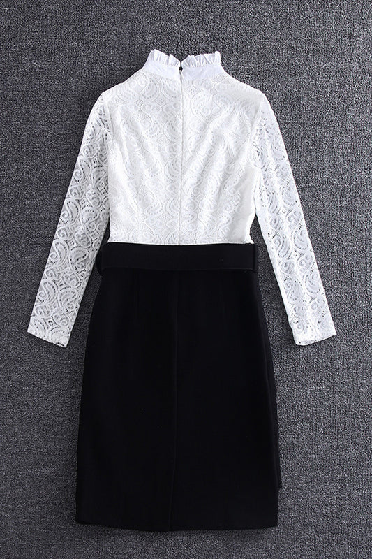Faux Two Piece V-neck Lace Tops With Flared Mesh Skirt