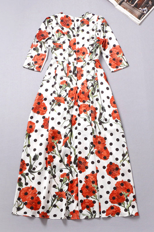 Tulip Floral With Dot Pattern Half Sleeve Dress