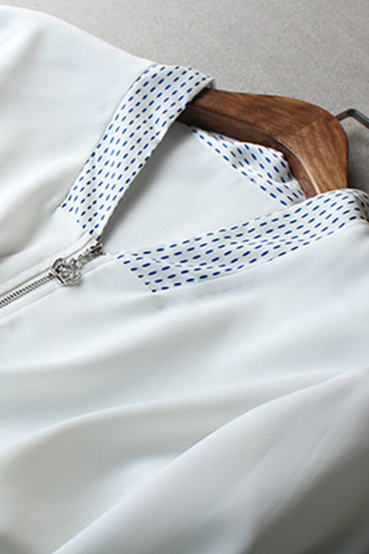V Neck Puff Sleeve Empire Waist Flare Hem Dress With Zipper