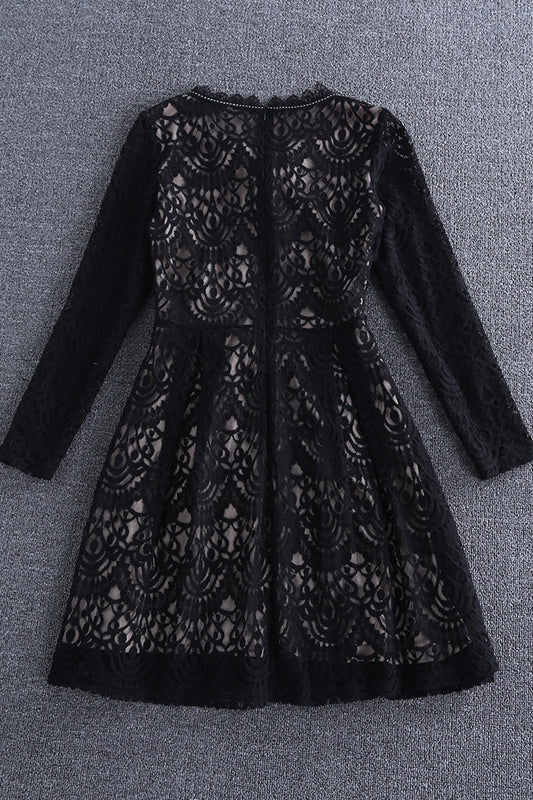 V-Neck Eyelash Lace 1/2 Sleeve Dress