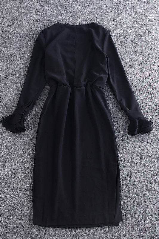 V-Neck With Stud Decroration Mandarin Sleeve Dress