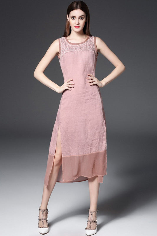 V Neck Vintage Patchwork Sleeveless Casual Dress