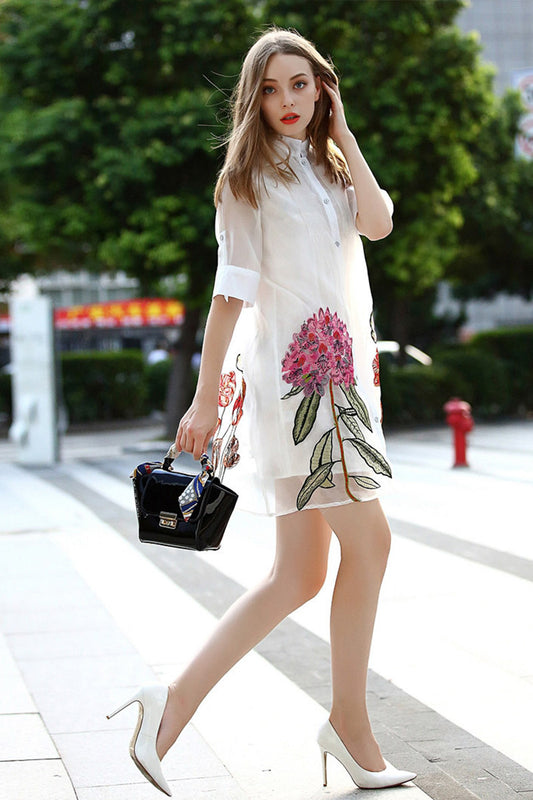 WOMEN'S CASUAL FLOWER PRINTING STAND COLLAR BUTTON DOWN SHIRT