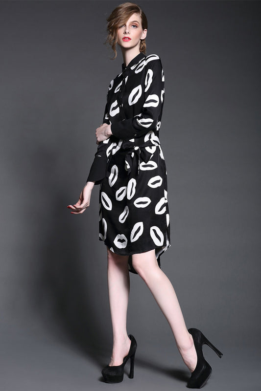 Women's Casual Printing Graffiti Dress Long Sleeve Mandarin Collar Dress