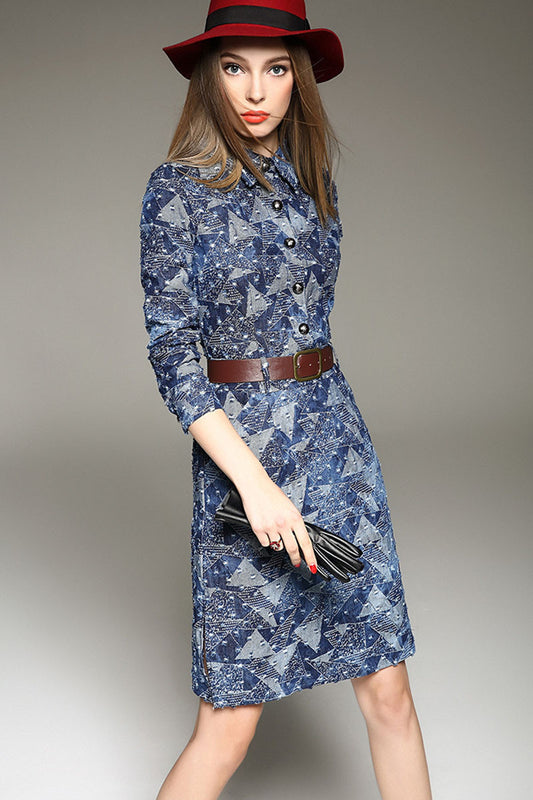 Women's Elegant Printing Long Sleeve Flower Dress Embroidery