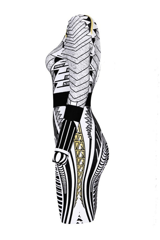 Boat Neck Retro Pattern Backless Dress Stretch Bodycon Solid Mini Dress