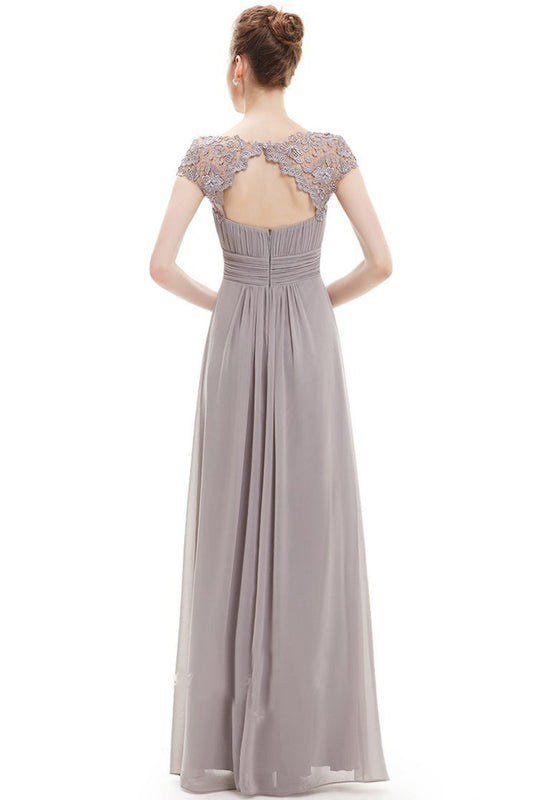 Boat Neck Lace Applique Backless Empire Waist Gown Long Dress