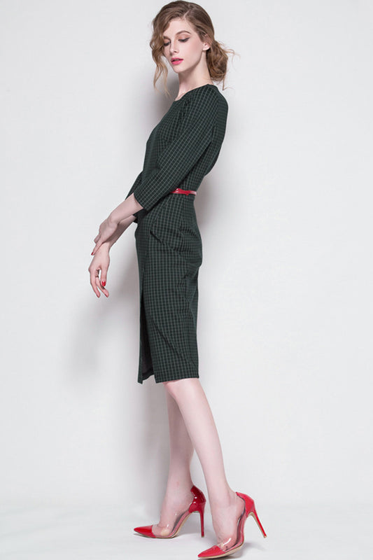 WOMEN'S ROUND NECK WEAR TO WORK ELEGANT 9 SLEEVE MIDI DRESS
