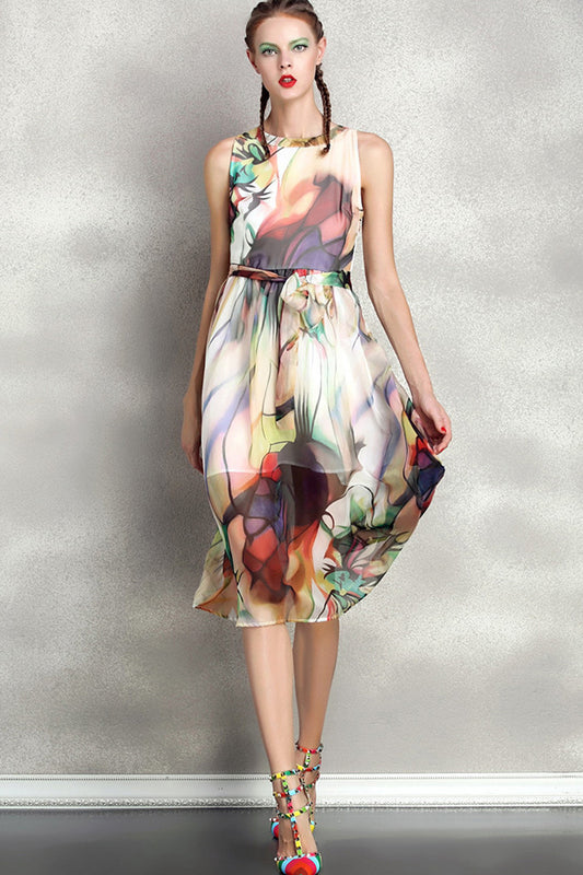 [30% OFF TILL 7 APR] Casual Sleeveless Floral Printed Vacation Midi Dress