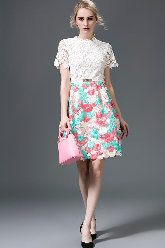 [30% OFF TILL 7 APR] Casual Lace Embroidery Layer Casual Dress With Belt