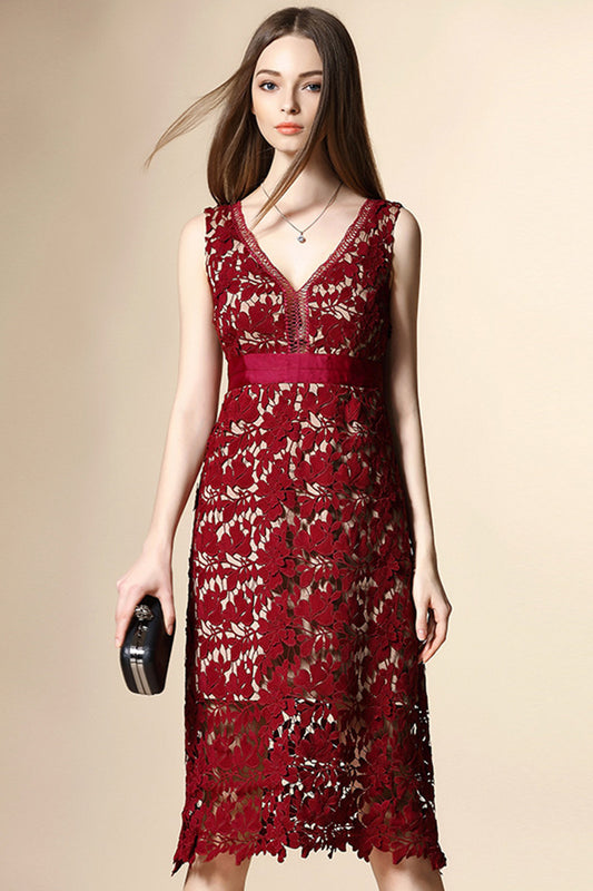 [30% OFF TILL 8 APR] Grace Hollow-Out Lace High-Waist Slim Cocktail Dress