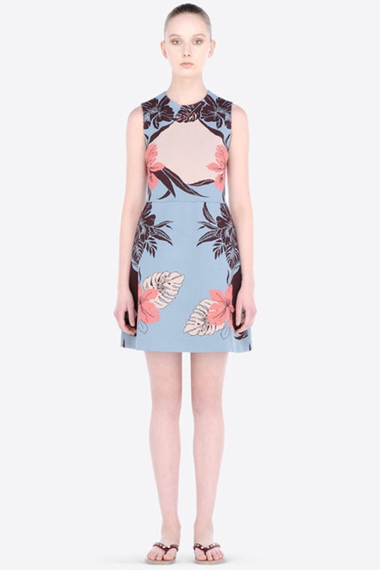 [30% OFF TILL 8 APR] Round Collar Leaves Pattern Pleated Full Dress