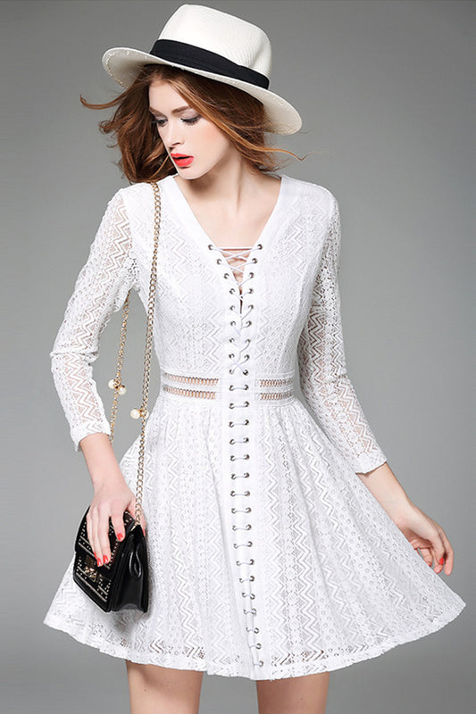[30% OFF TILL 8 APR] Multi Lace Paneled Lace-UP Short Cocktail Dress