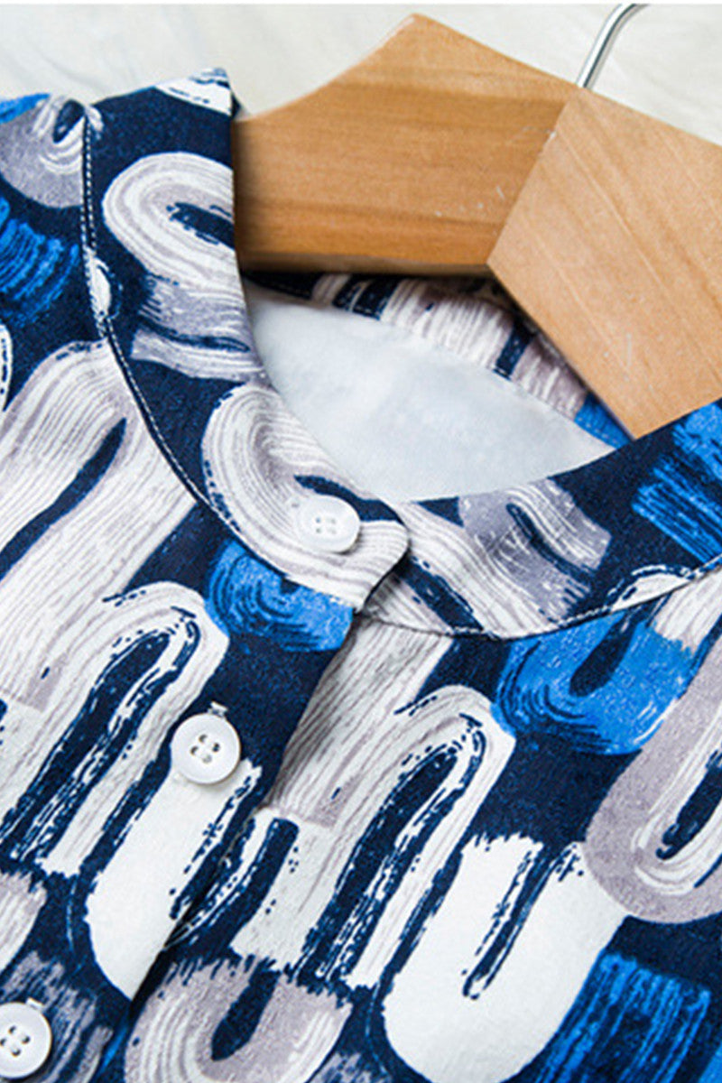 women's casual a-line stand collar 3/4 sleeve print and floral midi dress