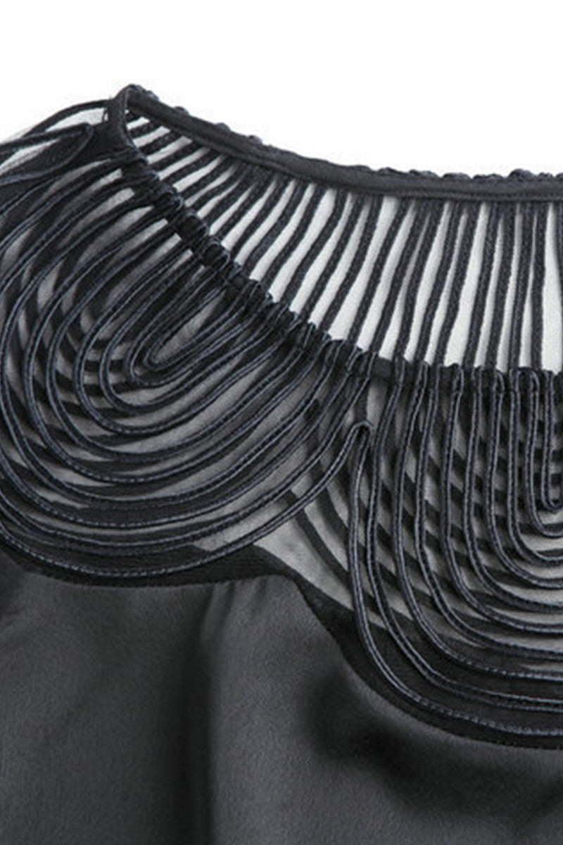 WOMEN'S GRACE SHORT SLEEVE BLACK HOLLOW-OUT NECK BLACK DRESS