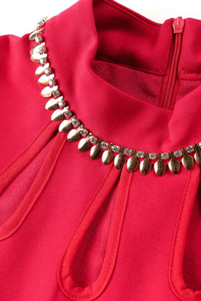 WOMEN'S STAND COLLAR 3/4 SLEEVE GRACE SHORT DRESS WITH BELT