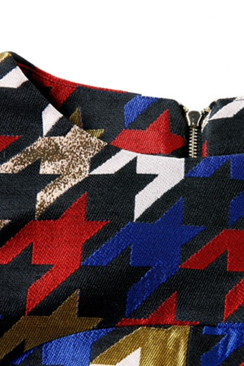 WOMEN'S SLIM ROUND NECK PRINT AND FLORAL 3/4 SLEEVE VOCATION SHORT DRESS