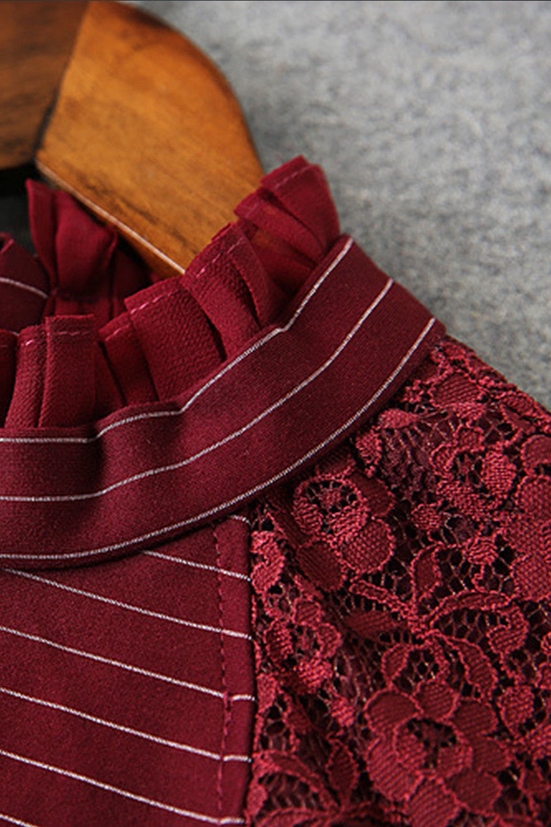 Thin Stripe Joint Lace Little Mock Neck Dress
