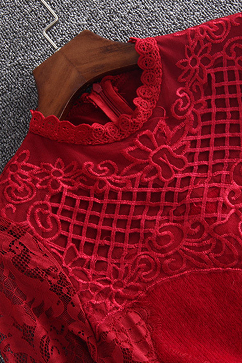 WOMEN'S LACE ROUND NECK CASUAL GRACE LONG SLEEVE PARTY DRESS