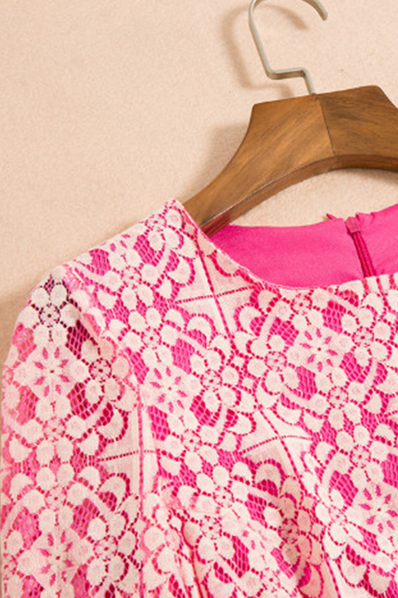 WOMEN'S ROUND NECK LACE LONG SLEEVE MIDI DRESS