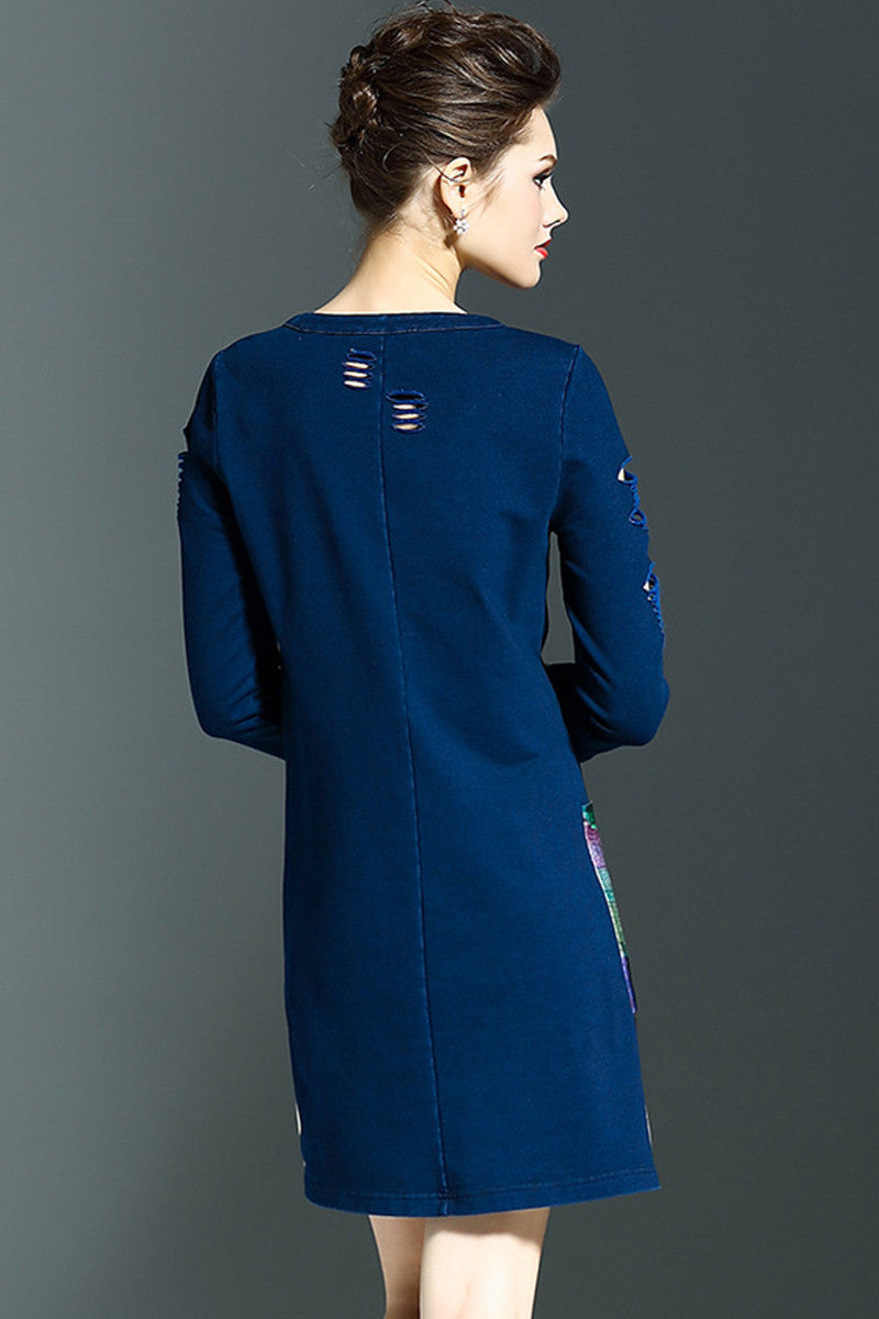 women's round neck print and floral 3/4 sleeve vintage short dress