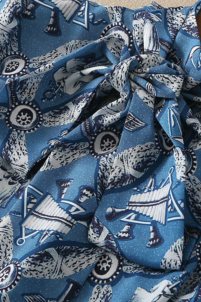 women's elegant casual print and floral stand collar 3/4 sleeve midi dress