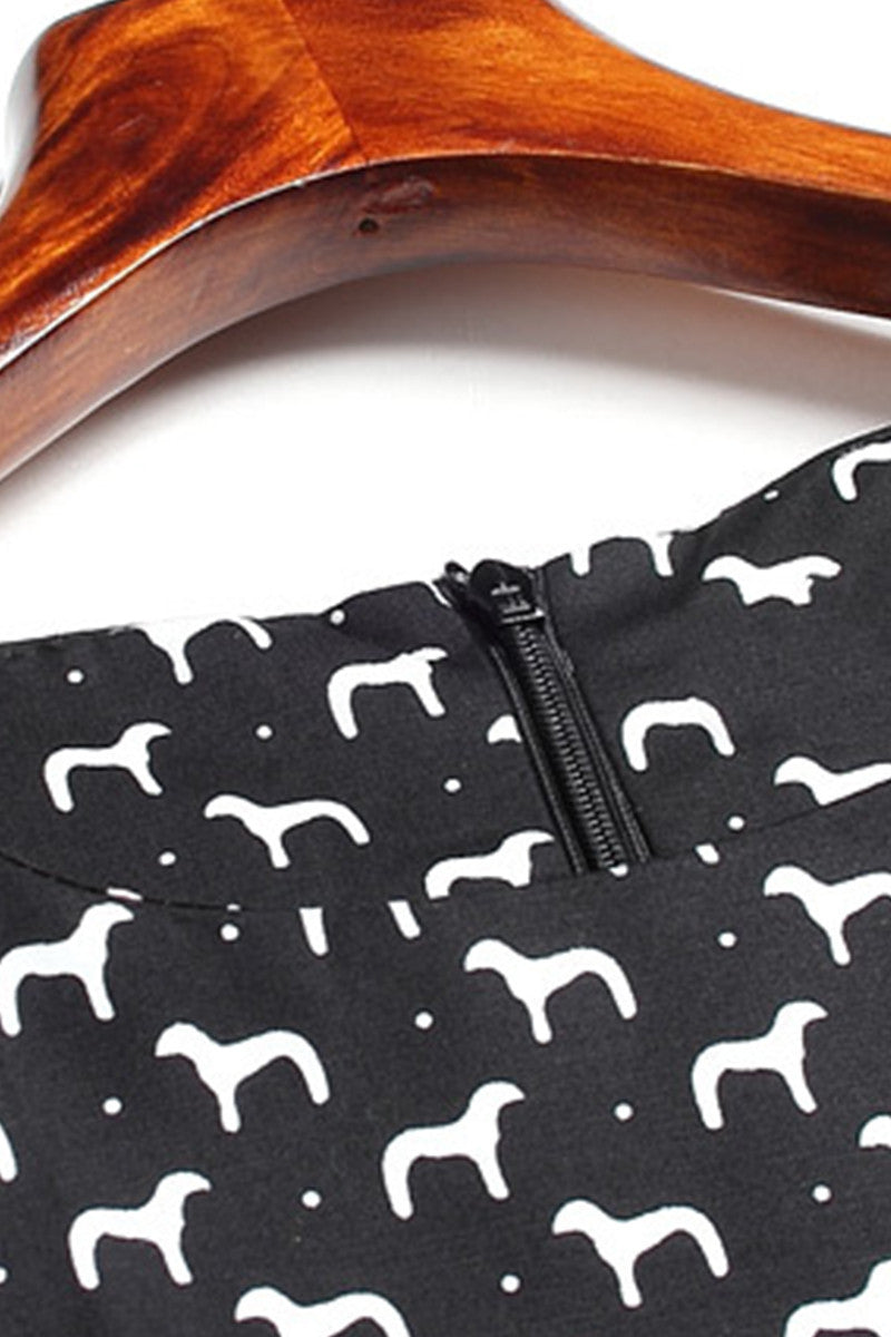 WOMEN'S SLIM FORMAL 3/4 SLEEVE PRINTING ROUND NECK DRESS WITH BELT