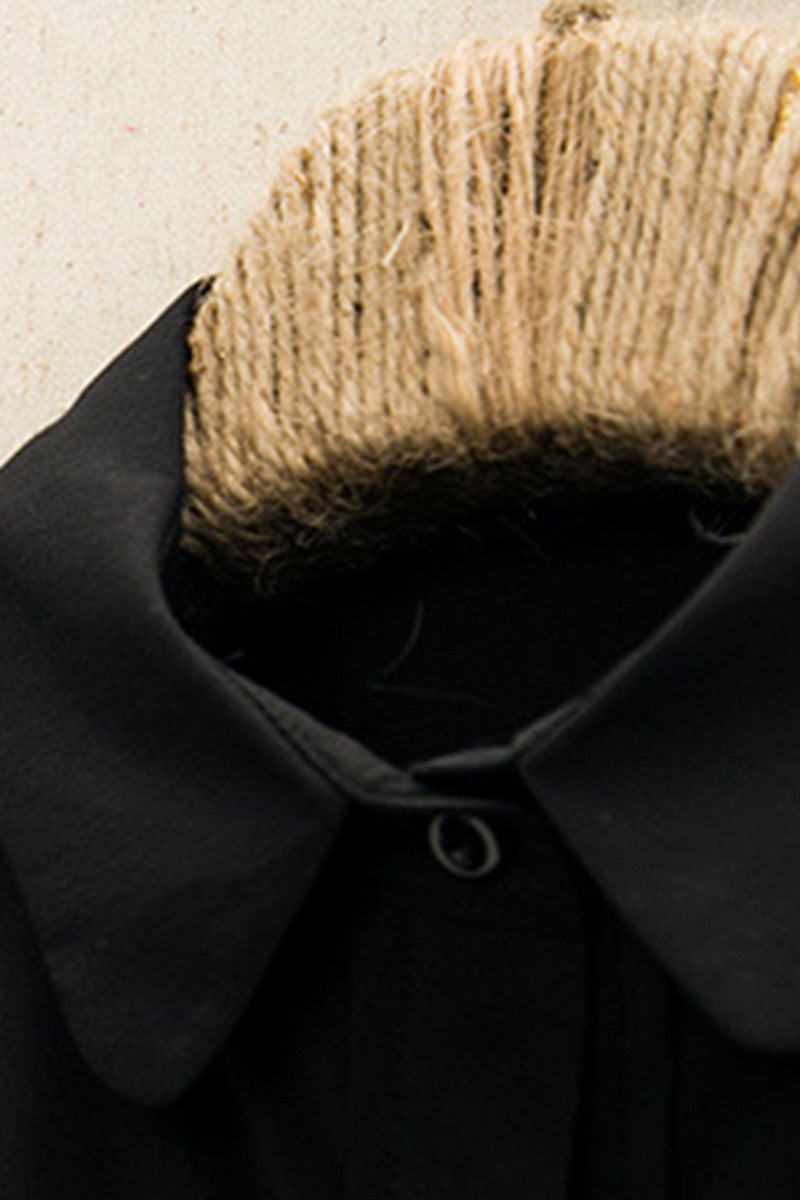 ELEGANT CHIFFON LONG SLEEVE DOLL COLLAR PLEATED MIDI DRESS
