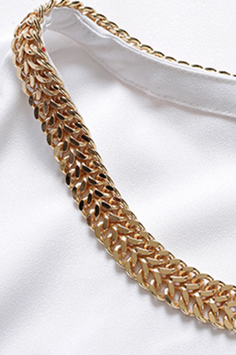 Chain Neck 3/4Sleeve Slit Side Hollow-Out Back Chiffon Top