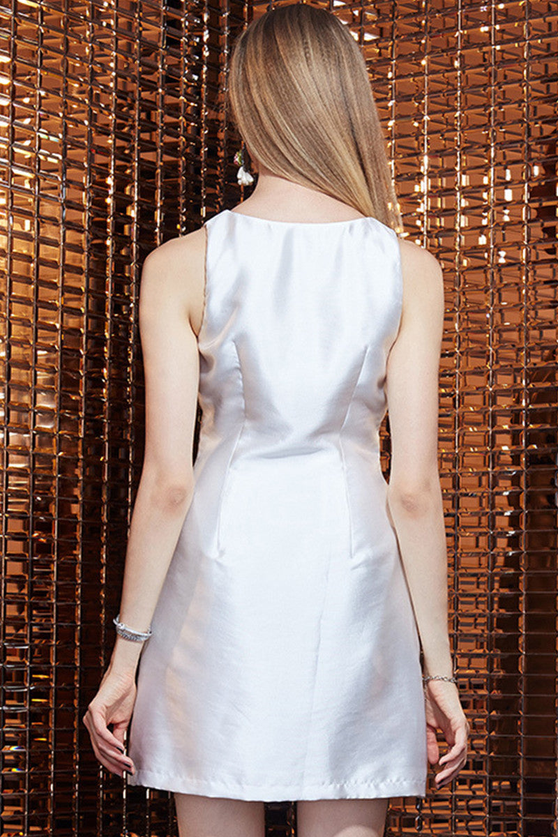 CASUAL ROUND NECK SLEEVE LOTUS EMBROIDERY SINGLE-BREASTED DRESS