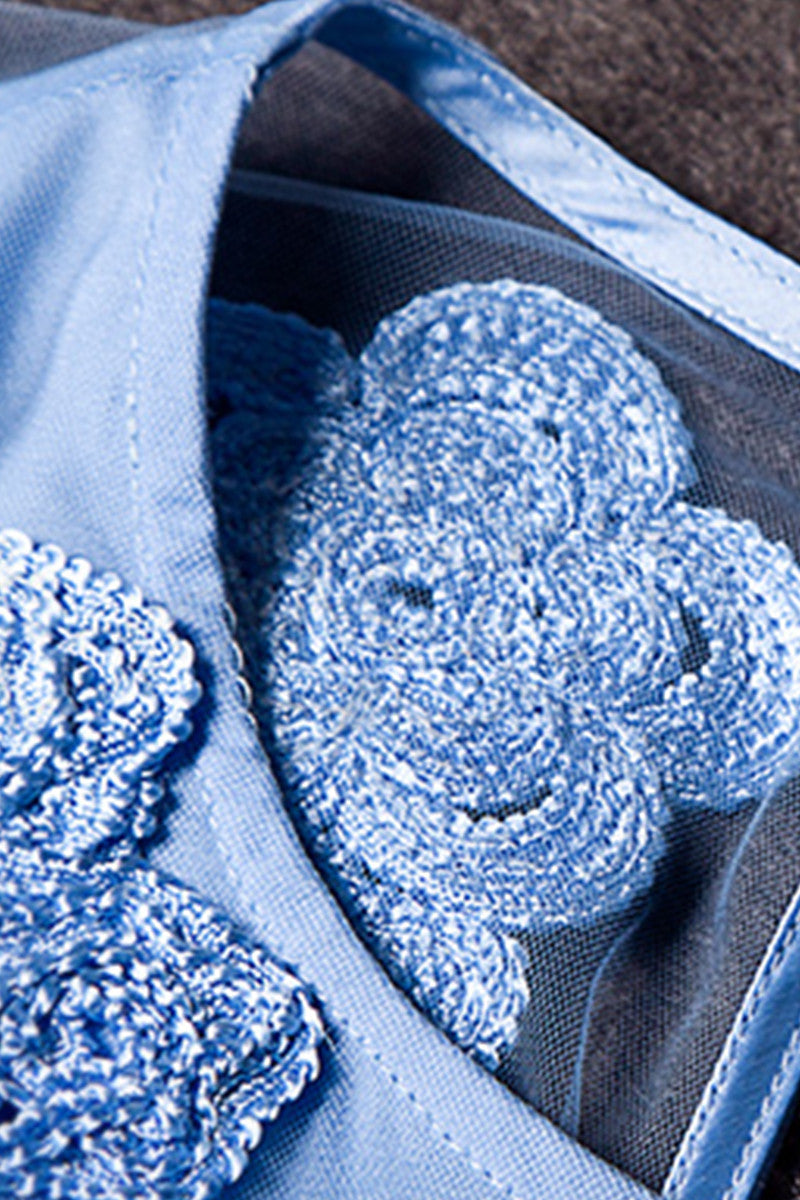 CHIFFON FLOWER EMBROIDERY A-LINE ROUND NECK SLEEVELESS COCKTAIL DRESS