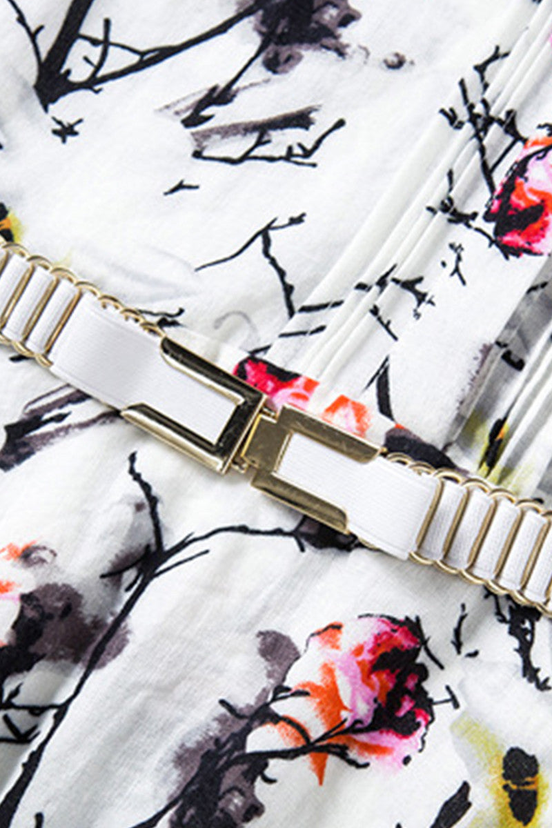 Elegant Half Sleeve Rose Wash Printed Midi Wear To Work Dress