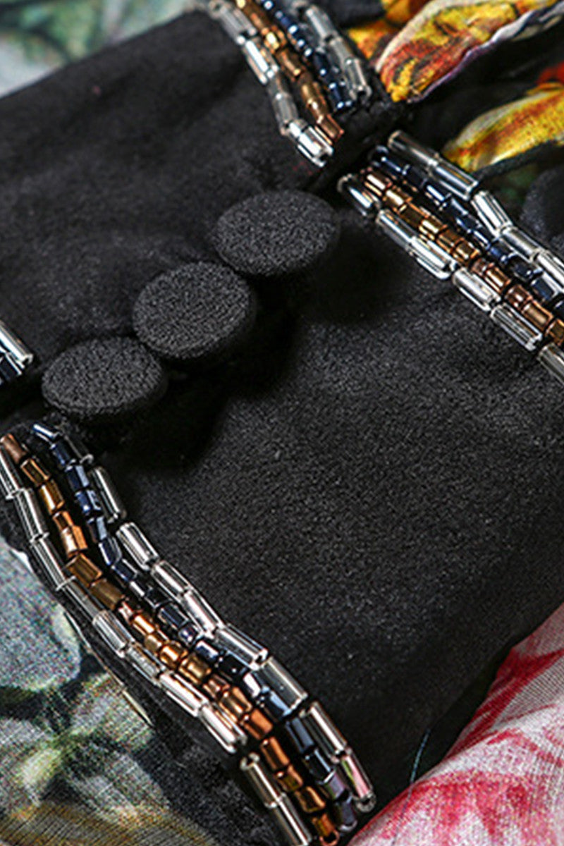 Beaded Rond Collar Drop Hole Full Floral Print Dress