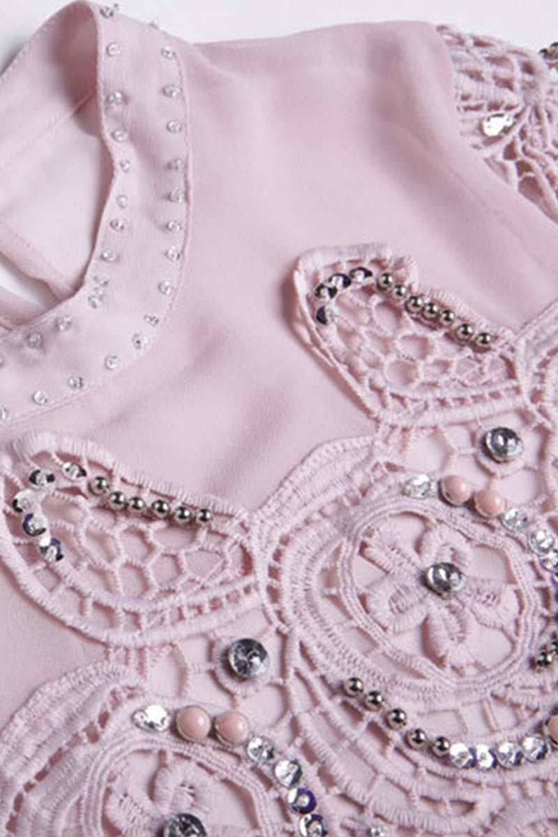Casual 3/4 Sleeve Embroidery High Waist Pleated Skirt
