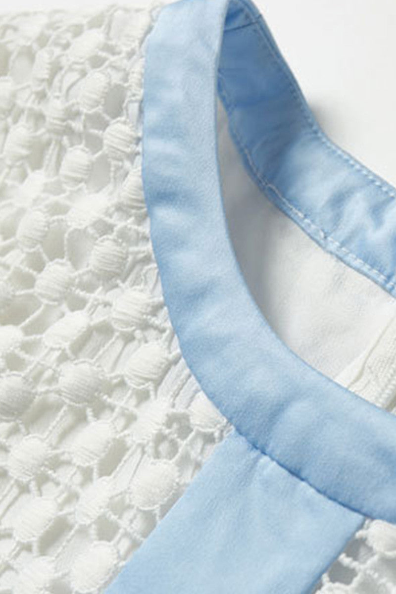 Color Block Lace-Paneled Round Neck Cocktail Short Dress