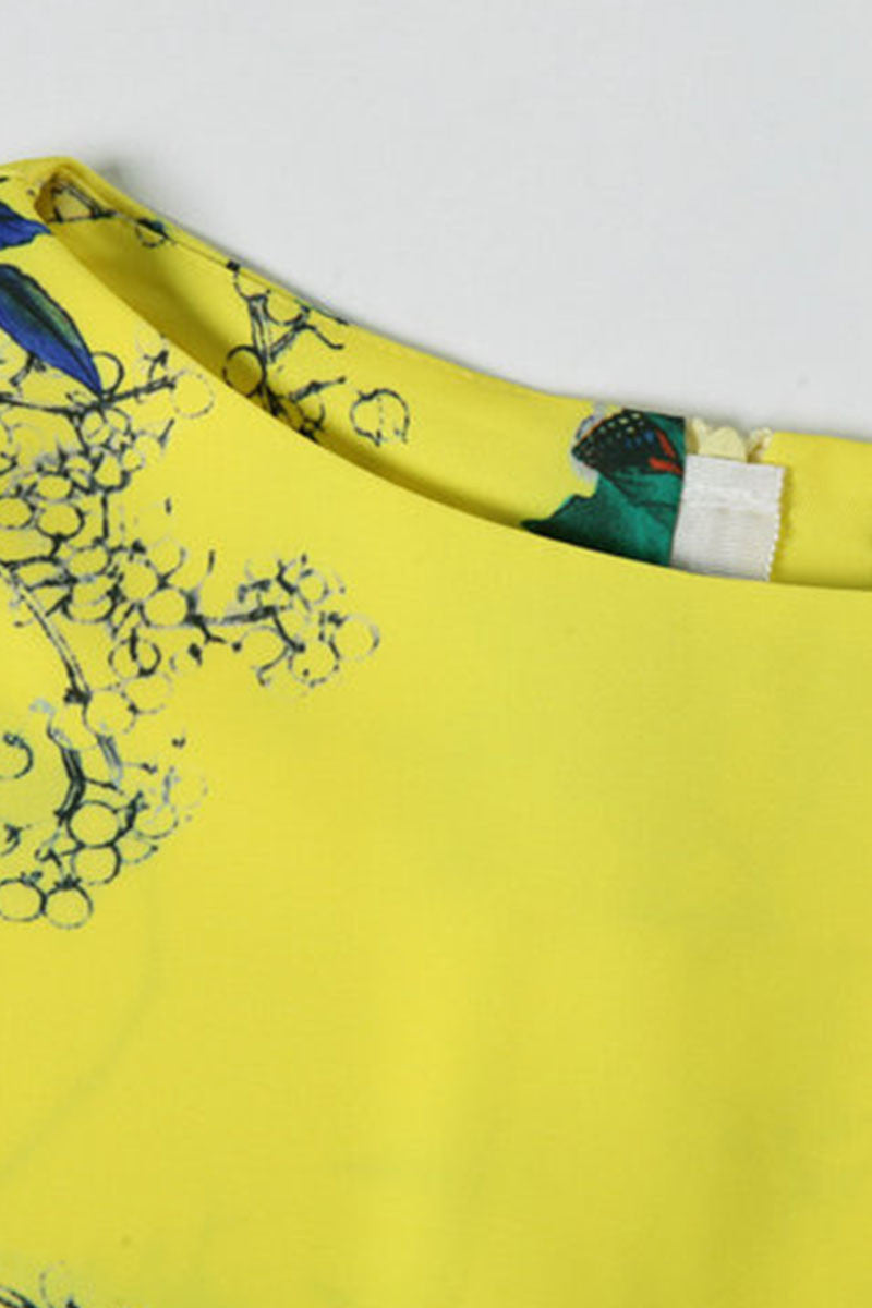 Boat Neck Floral Printed Back Slit Bodycon Dress