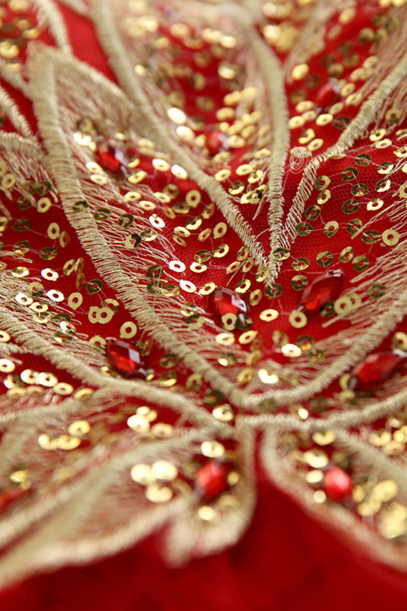 V Neck Sleeveless Rhinestone Sequin Tulle Grown Dress