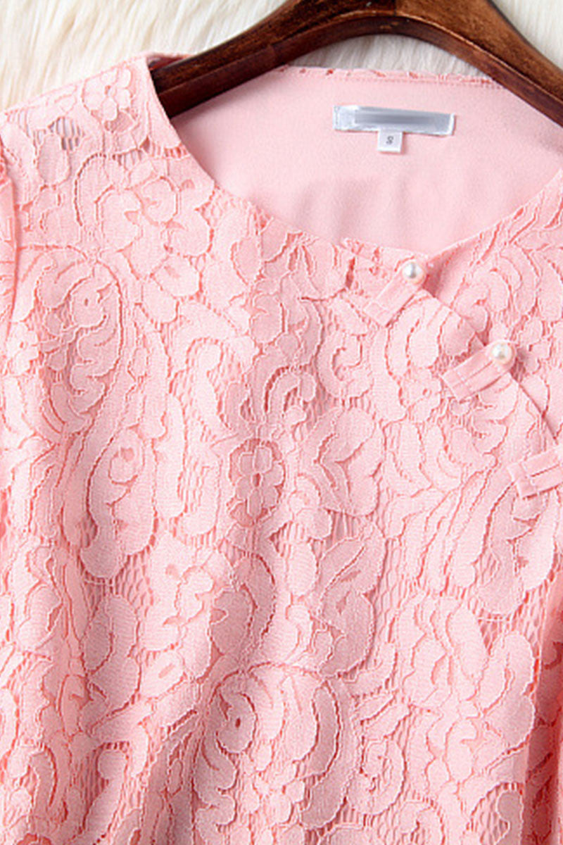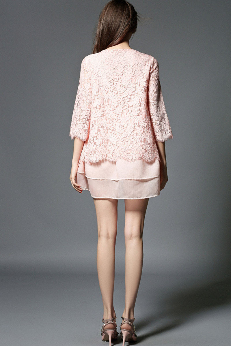 WOMEN'S CASUAL H-LINE ROUND NECK LACE SHEER MESH KINT DRESS