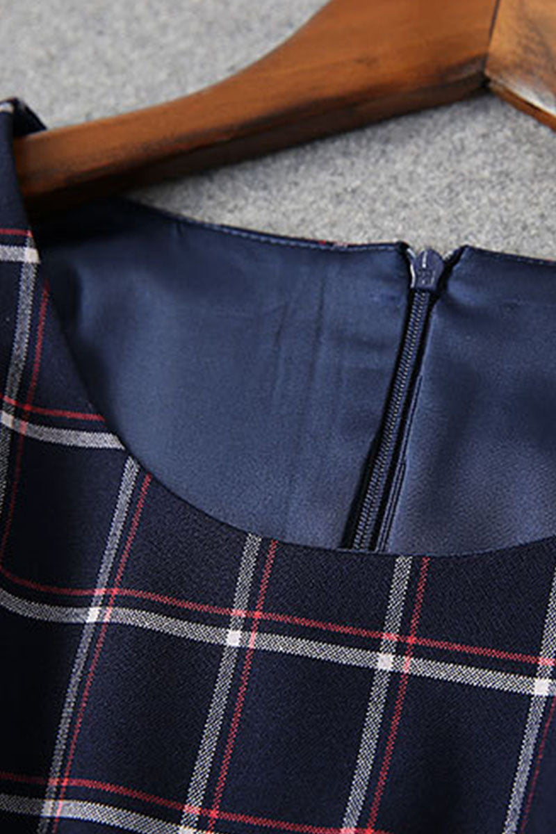 WOMEN'S CASUAL ROUND NECK PLAID 3/4 SLEEVE MIDI VOCATION DRESS