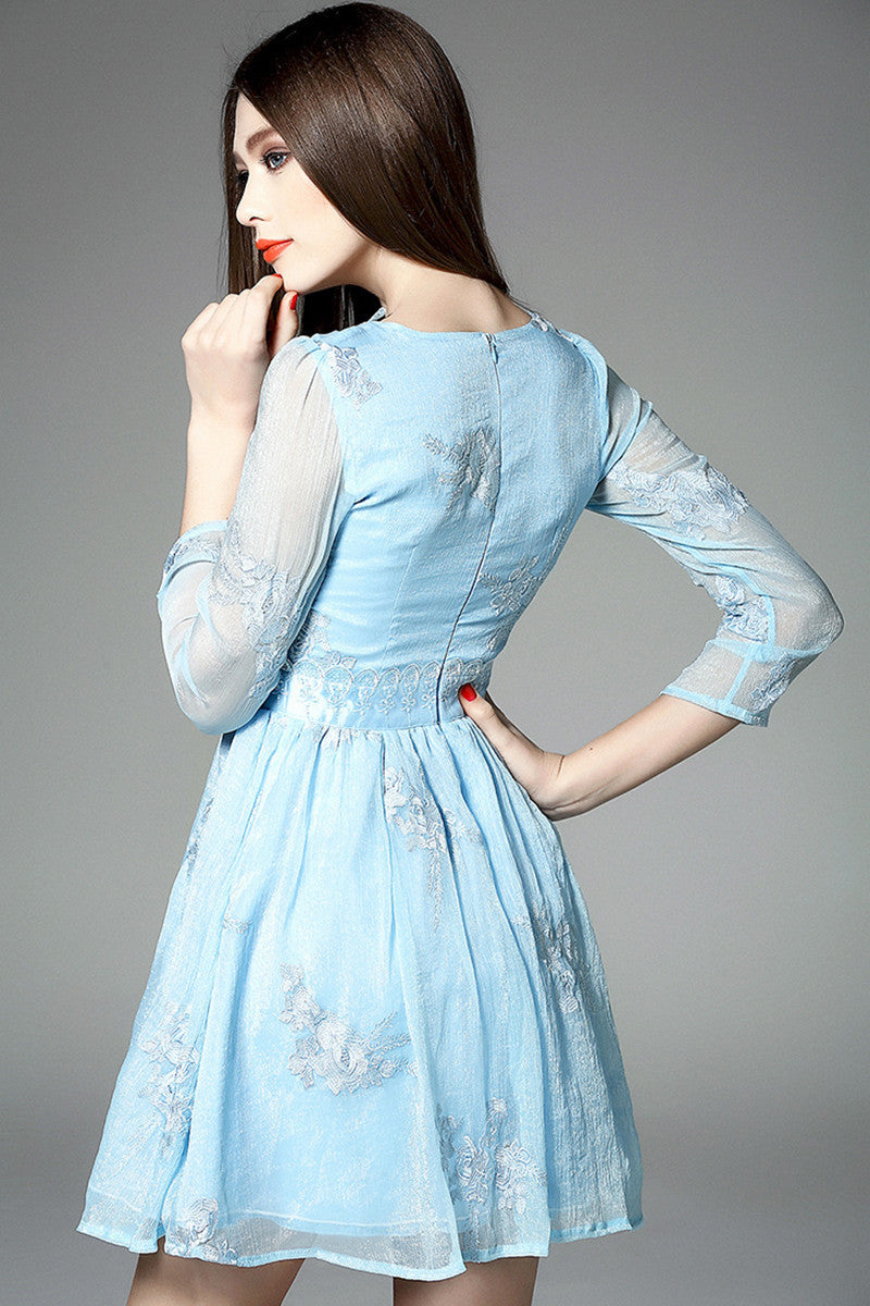 WOMEN'S GRACE V NECK LACING 3/4 SLEEVE WEAR TO WORK SHORT DRESS