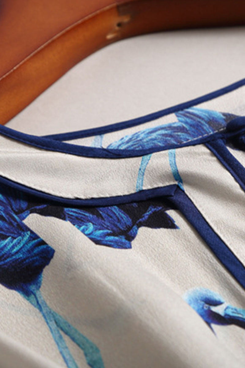 CASUAL H-LINE LOOSE ROUND NECK 3/4 SLEEVE CRANE PATTERN DRESS WITH BELT