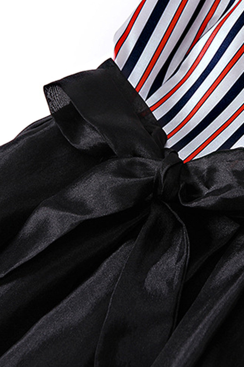 Women's Slim Stripe Fit And Flare Dress Casual Sleeveless Skirt With Belt
